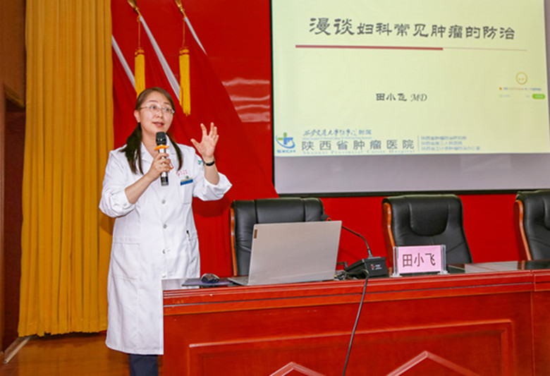 田小飞为了达到科普宣传目标,针对不同的人群采取不同的方法。对基层医生培训,田小飞从医学的角度引证博据,逻辑缜密,手把手的传授技能,提升基层医院肿瘤治疗水平。在深入社区妇女“两癌”防治宣传中,田小飞将医学术语生活化大众化,让妇女听得懂,记得住,用得上。田小飞说,培训不能走过场,要解疑惑、出效率。田小飞带领专委会成员,先后走进延安、铜川、汉中、安康等多个市县,三秦大地留下了她奔波的身影和为妇女健康服务的足迹。她用行动实现了参与人群多样化,辐射带动一大片的作用。让群众用科学态度看待“两癌”,消除恐惧心理,及时就医诊治。